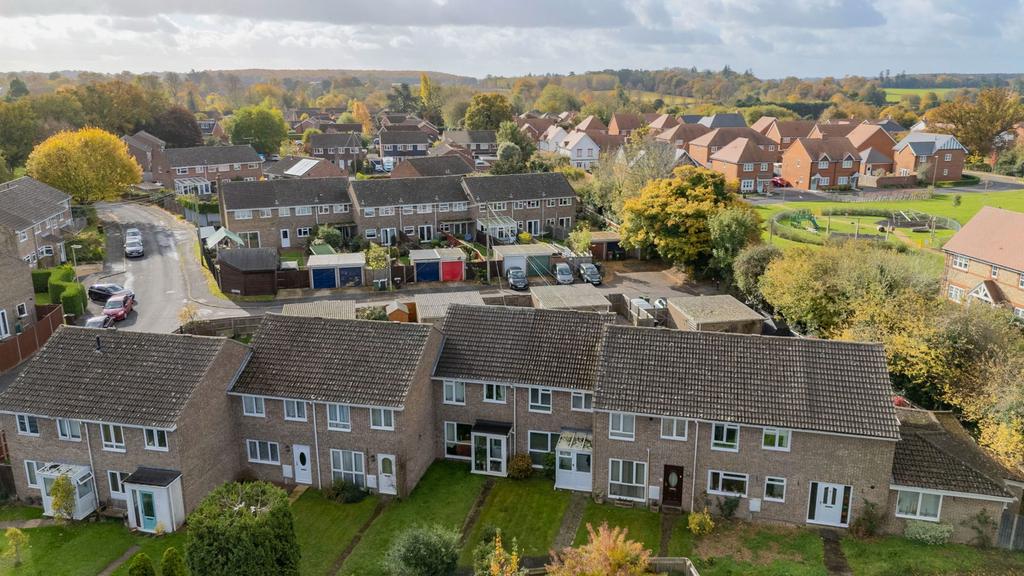 This charming three-bedroom terraced family home is nestled in a peaceful location in the popular village of Oakley, just a stone's throw away from Basingstoke. The ground floor boasts a kitchen/dining room with shaker style cabinetry and metro style tiles creating a clean backdrop for everyday cooking; there is an integrated oven with gas hob and room for the usual appliances. French doors open to the rear garden creating a seamless indoor-outdoor flow, perfecting for entertaining or relaxing. The lounge looks out onto the front garden with stairs leading to the first floor. There's also a practical under-stair storage cupboard. Upstairs, a central landing serves three bedrooms and a family bathroom.