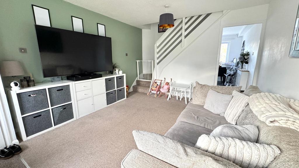 As you enter the property, the front door opens directly into a bright and welcoming lounge, creating an immediate sense of warmth and homeliness. The lounge features a large window to the front aspect, allowing plenty of natural light to fill the room, and provides ample space for both seating and dining furniture. The staircase leads conveniently to the first floor, and a door gives access through to the kitchen at the rear.