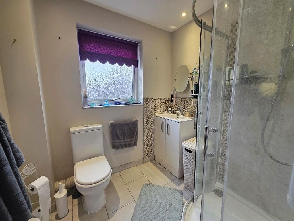 Shower Room: Window to rear elevation, low level WC, wash hand basin with tiled splashbacks, shower cubicle
