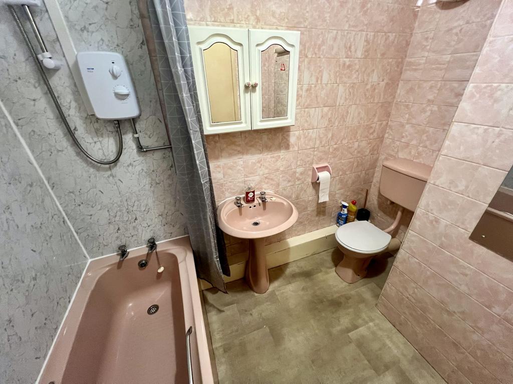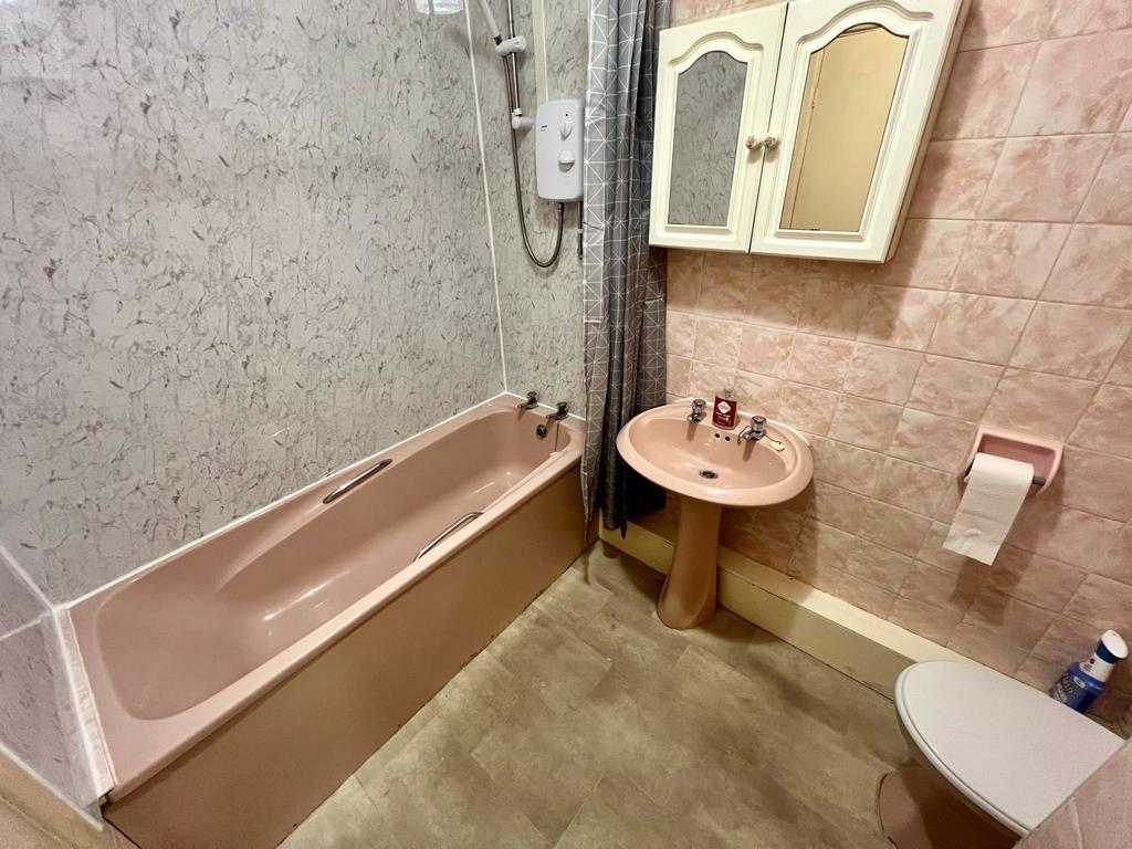 Panelled bath with shower over, wash hand basin, low flush w.c.