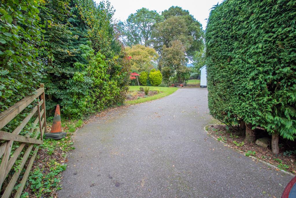 The property is approached via a tarmac driveway with a five-bar gate, leading to a generous parking area and a double garage (6.30m x 5.38m). Please note, there is a vehicle right of way for the neighbouring property across the driveway. The gardens are predominantly laid to lawn and beautifully stocked with a variety of plants, shrubs, and mature trees. Additional features include two sheds, a greenhouse, and two paved patio areas-perfect for outdoor entertaining. The gardens adjoin a charming stream and benefit from shared private drainage.