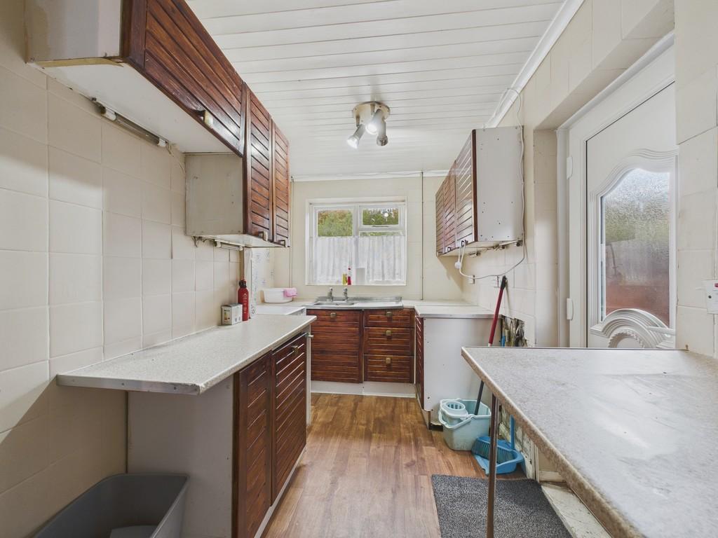 The kitchen is situated at the rear of the house and is fitted with a range of base and wall units, offering storage and workspace. There's potential here for modernisation, whether as a separate kitchen or opened up into a dining kitchen if desired, subject to the usual checks and permissions.