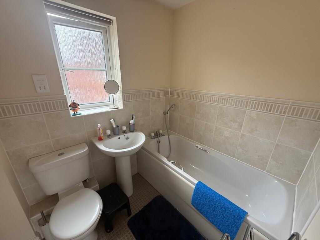 Family Bathroom Panelled bath with mixer shower attachment, pedestal wash hand basin, low level WC with concealed flush, complimentary splash back tiling, radiator, electric shaver point.