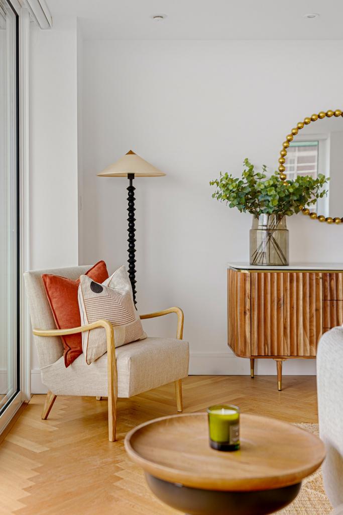 Inspired by the natural elements, the Porcelanosa kitchens incorporate finishes in wood and stone that are visually exciting, yet wholly practical. These handleless kitchens boast light marble effect silestone worktops with feature under cabinet lighting and benefit from branded integrated appliances. The expansive windows ensure rooms are light-filled and airy with sliding doors onto the balcony.
