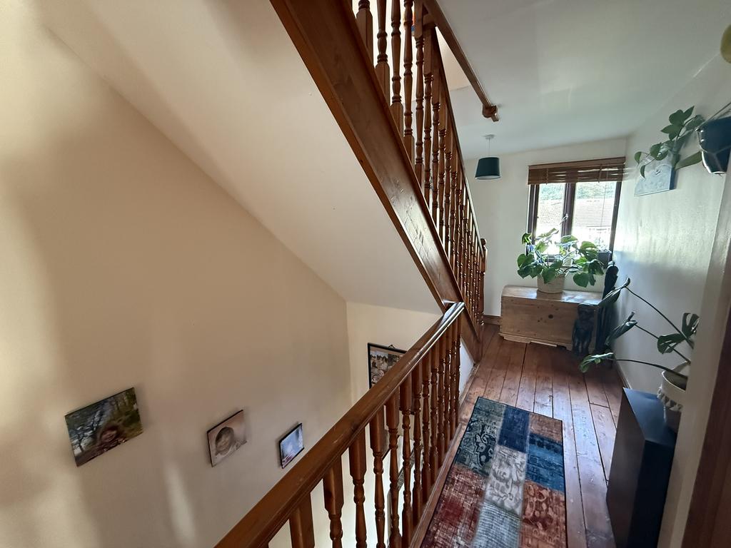 MAIN LANDINGExposed timber floor, double glazed window to front, radiator, linen cupboard, stairs elevating to the second-floor loft bedroom and doors to: