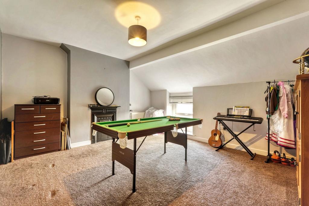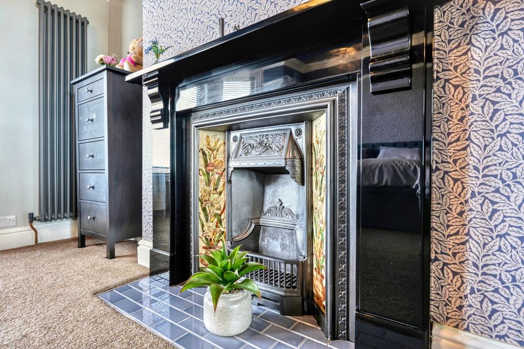The ground floor has the kind of layout that works whether you’re hosting guests or herding kids. The lounge is bold and beautiful, with a bay window and restored decorative fireplace. There’s a second reception room too – ideal as a sitting room, playroom or home office.