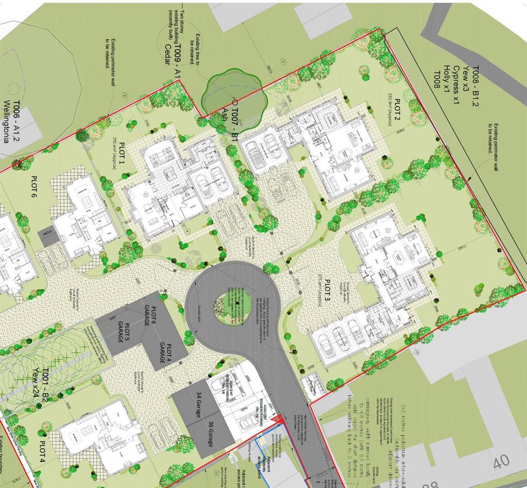 Outside - To the front of the property, a gate opens onto a large private driveway with ample off-road parking and direct access to the triple garage. The house sits on a generously sized plot within a private gated community of just six homes. Pedestrian access on both sides leads to the large rear garden.