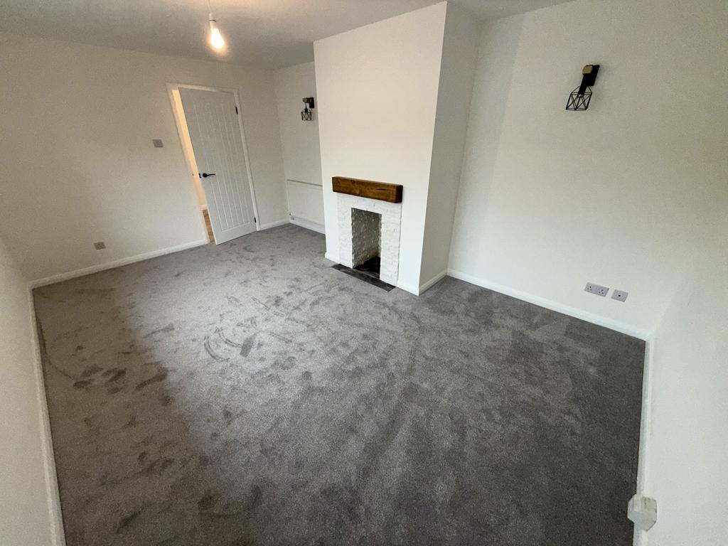 Double glazed window to front with open countryside views, open fireplace set in a feature split face quartz tiled surround.