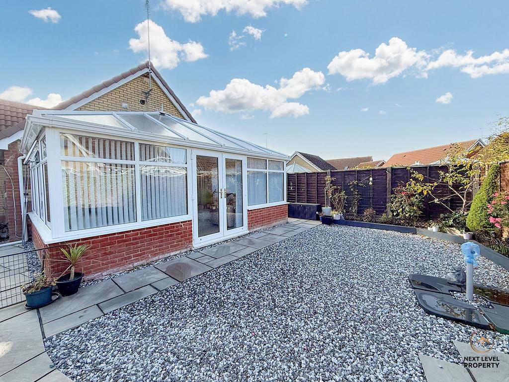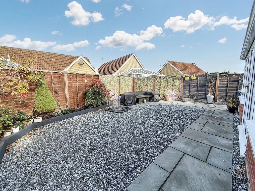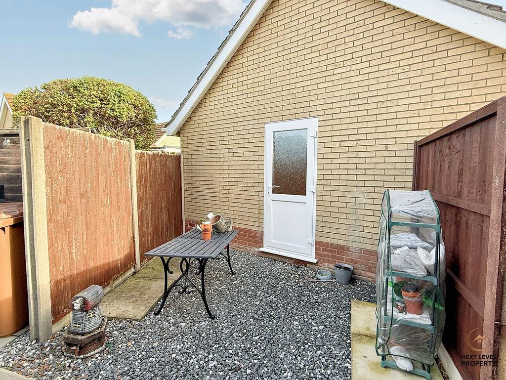 There is also side access leading to the garage and a gate to the front leading to the parking area, ensuring both practicality and convenience. The space is attractively presented yet easy to maintain — perfect for those who enjoy a pleasant garden without extensive upkeep. The bungalow overlooks a public open space giving lovely views and a feeling of openness.