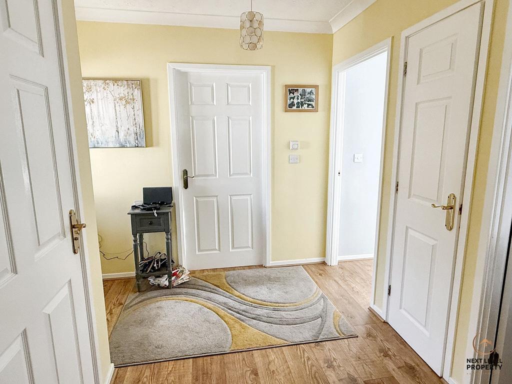 Inside, the property is tastefully finished throughout and designed for easy, modern living. The spacious lounge features light tubes that enhance natural light, two radiators, and attractive wood-effect laminate flooring. Sliding patio doors open into the conservatory, creating a lovely flow through the living spaces.