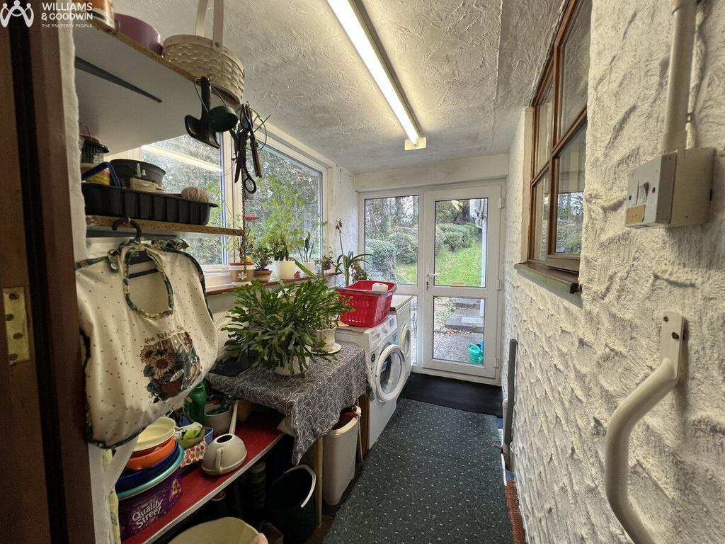 Plumbing for washing machine and space for tumble dryer. Window to side and window to rear.