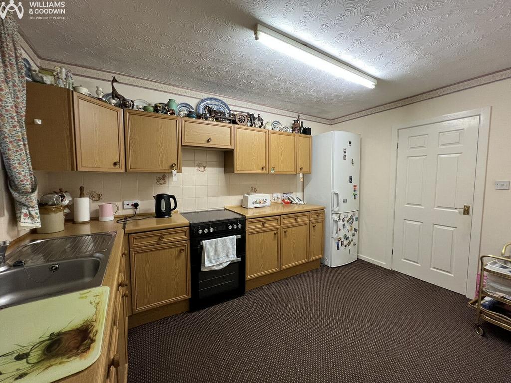 Fitted with a matching range of base and eye level units with worktop space over, stainless steel sink, space for fridge/freezer and cooker. Window to rear. Radiator