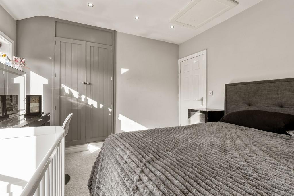 While similar properties in the area have used their extensions to add a third bedroom, this home has been designed to maximise space and comfort. Both bedrooms are doubles, with the rear room enjoying pleasant views over the garden and nearby playing fields. The bathroom is a standout feature, a stylish four-piece suite with both a separate shower and bath. A useful storage cupboard adds to the practicality of the layout.