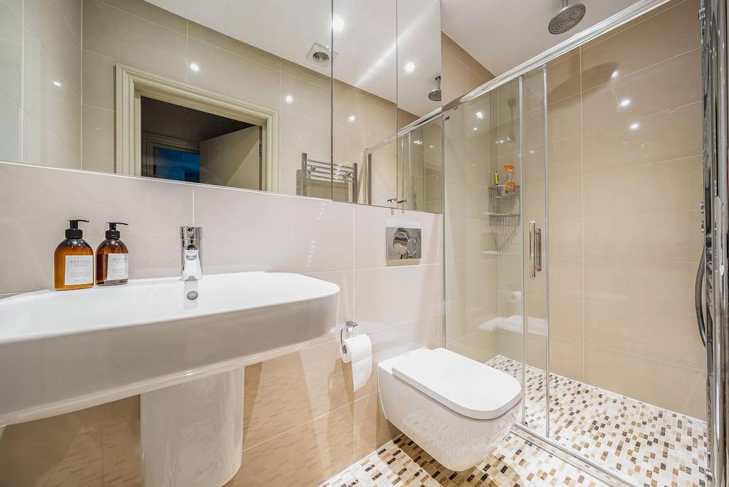 LONG LET. This stylish two bedroom flat is well-arranged on the lower ground floor of a red brick mansion block with bright interiors and ample storage in a superb location.