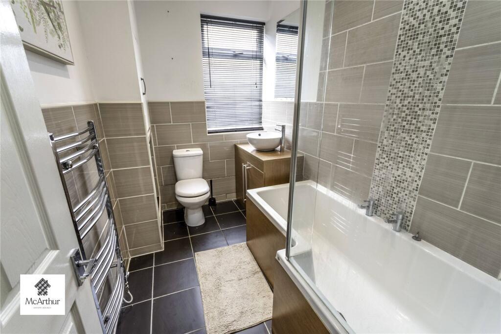 Upstairs you will find two bedrooms and a main family bathroom. The master bedroom is a generously sized double bedroom and features traditional fireplace surround. The second bedroom is a good sized single bedroom. The spacious main bathroom suite is modern and includes a large bath with overhead shower and glass screen. There is modern tiling throughout the bathroom as well as complimentary oak effect style units and chrome fittings.