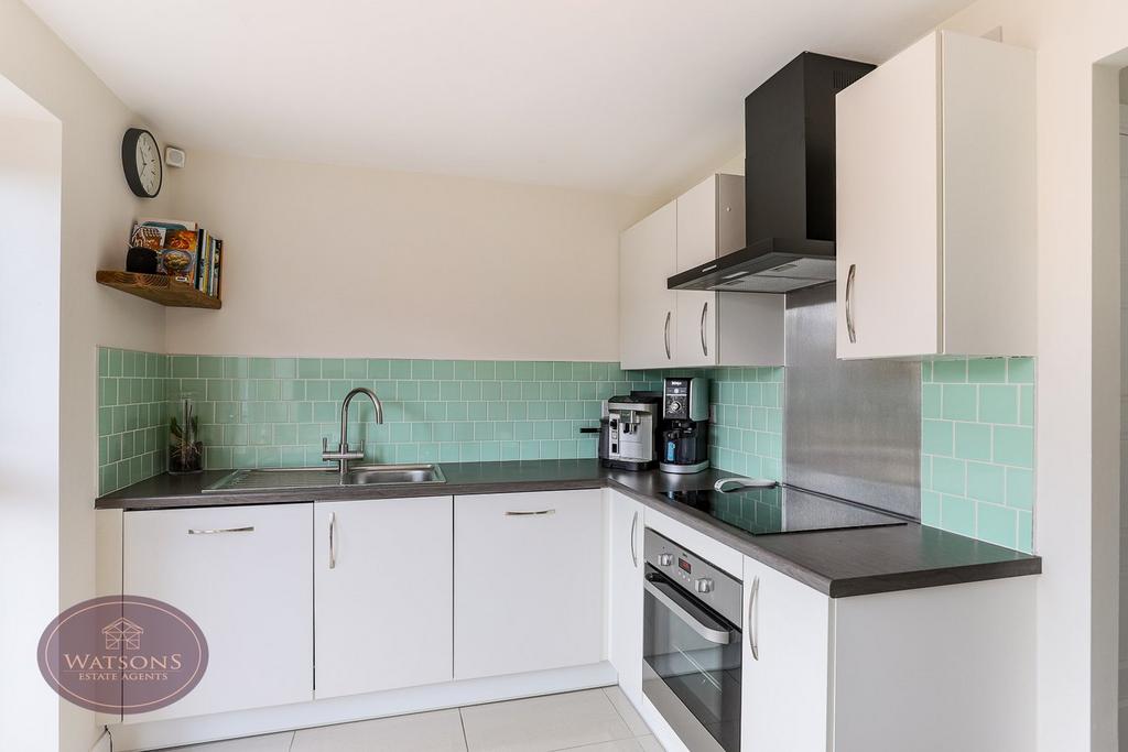 3.91m x 2.44m (12' 10" x 8' 0") A range of matching wall & base units, work surfaces with an inset stainless steel sink & drainer unit. Integrated appliances to include: electric oven & hob with extractor over, washing machine & dishwasher. Tiled flooring, radiator and French doors to the rear garden.