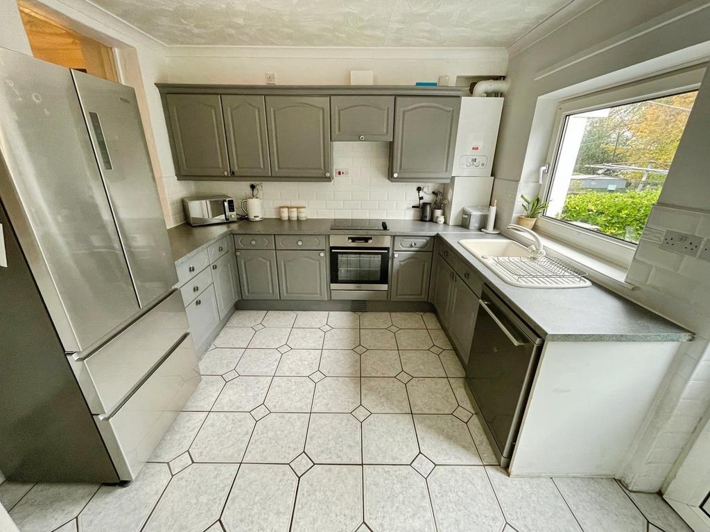 Textured and coved ceiling, plastered and emulsioned walls with tiling to the splash back areas, skirting and tiled flooring. A range of base and wall units in shaker style grey with complementary roll top laminate work tops. Integrated electric oven, four ring gas hob and overhead extractor fan and inset resin sink. Space for freestanding dishwasher and fridge/freezer, wall mounted gas combination boiler and PVCu double glazed window overlooking the rear and PVCu double glazed and frosted door leading out to the rear garden. Wall mounted vertical radiator. Sliding door leading to the family bathroom.
