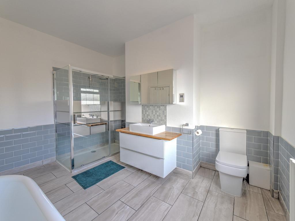 The first floor comprises: Spacious landing, large bedroom and fabulous bathroom with a walk-in shower cubicle, free-standing roll top bath, wash basin and a wc.