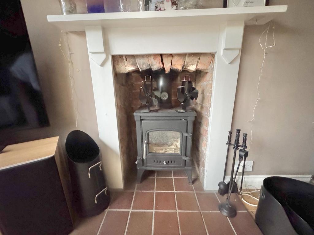 - Lounge with stripped wooden floors and log burner