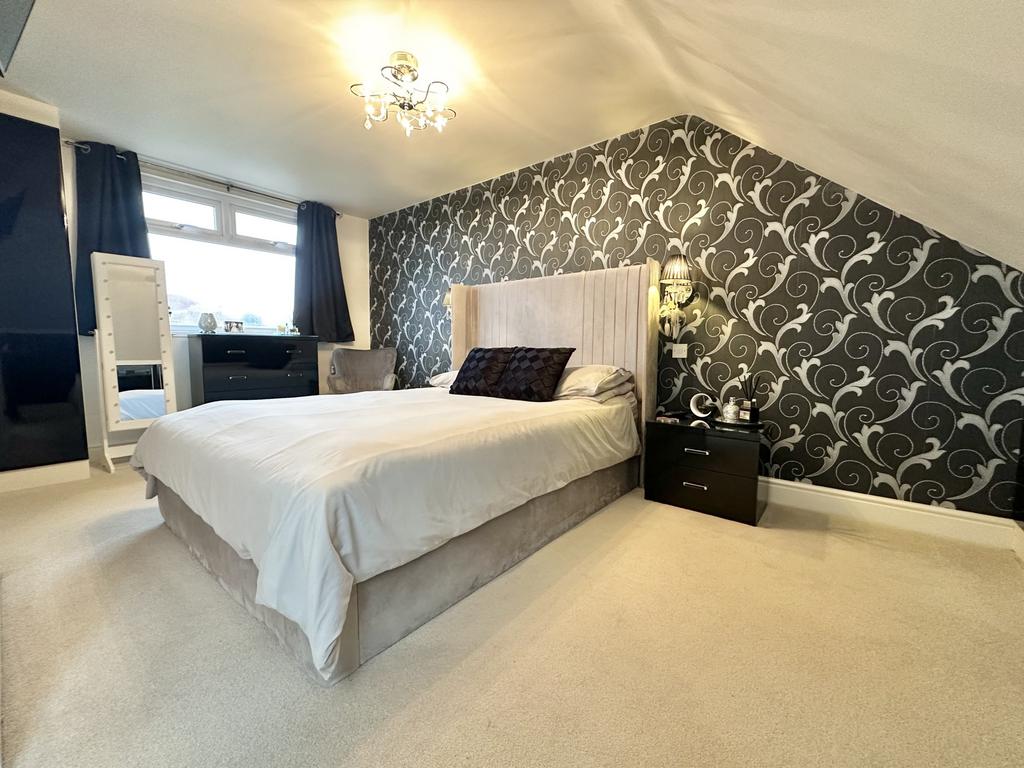 UPVC double glazed bay window to the rear aspect, central heating radiator, TV point, fitted wardrobes.