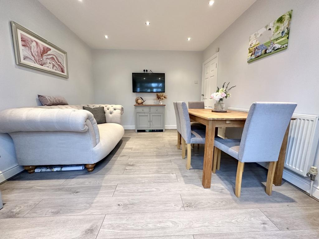 UPVC double glazed bay French doors to the rear aspect, laminate flooring, TV point, central heating radiator.