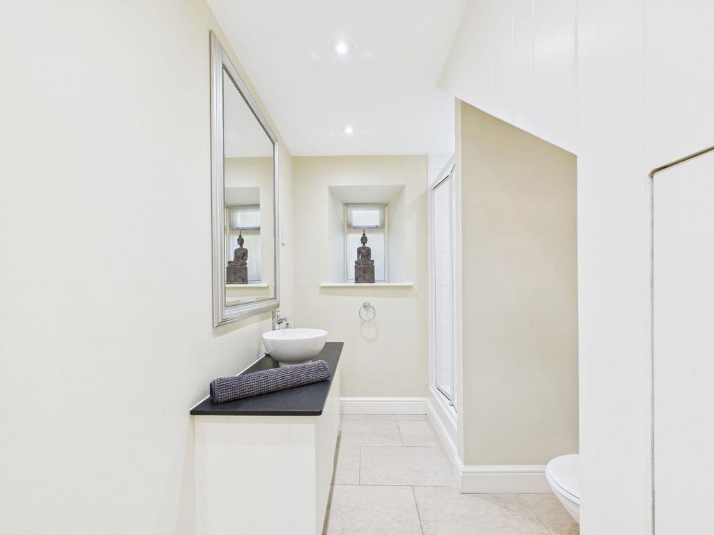 Three piece white suite comprising of shower cubicle, vanity wash hand basin with mixer tap, WC, Velux window, partially wall tiled and attractive grey flooring. Heated towel rail, electric shaver point and lovely view over the surround countryside towards Coniston Old Man and Wetherlam.