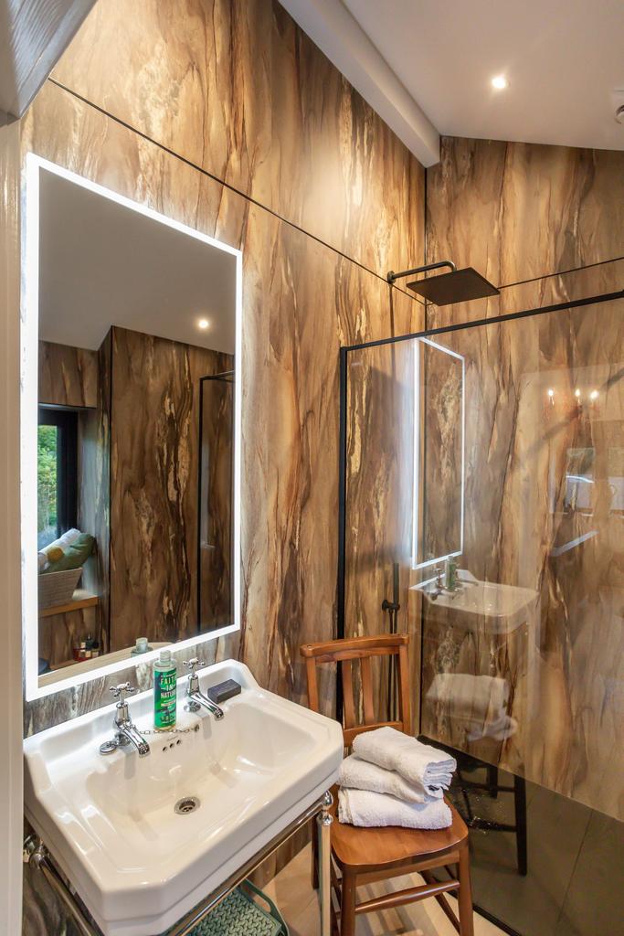 Upstairs, the impressive principal bedroom features a sleek ensuite shower room, while two further double bedrooms are served by a beautifully designed house bathroom, complete with a statement freestanding pewter bath and high-quality heritage style fittings throughout.