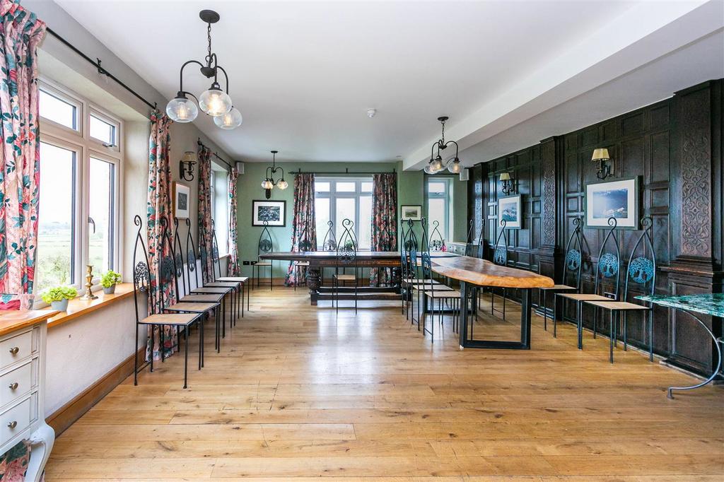 The lounge with oak flooring is open in two places to the restaurant and itself provides comfortable seating around a wood burning stove with carved oak mantelpiece. There are bi-folding doors and also French windows to the balcony.