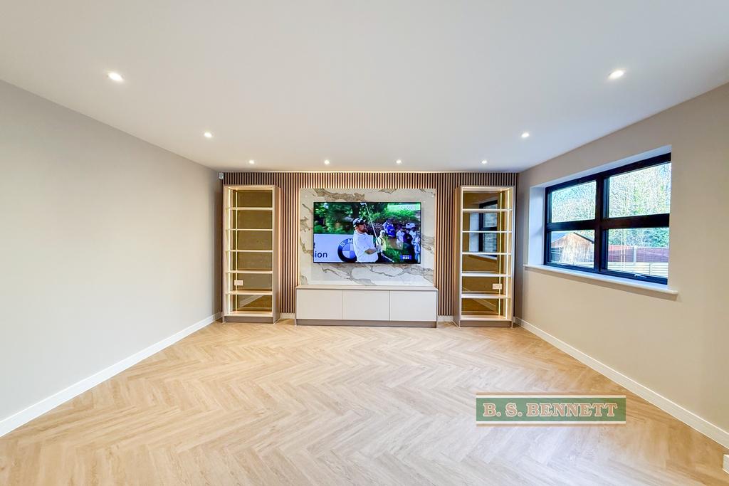 Luxury kitchen with fitted appliances including Siemens appliances including: fridge, freezer, microwave, coffee machine, 2 separate ovens, wine cooler, induction hob Media wall with 75' TV Fitted utility room/secondary kitchen with washing machine and separate dryer tower unit, induction hob and breakfast cupboard Pre-wiring for CCTV system CAT 6 wiring throughout Security alarm with keypad in entrance hall and garage 8 x Solar panels with Tesla Powerwall (Battery) Electric car charger point Newly turfed rear garden