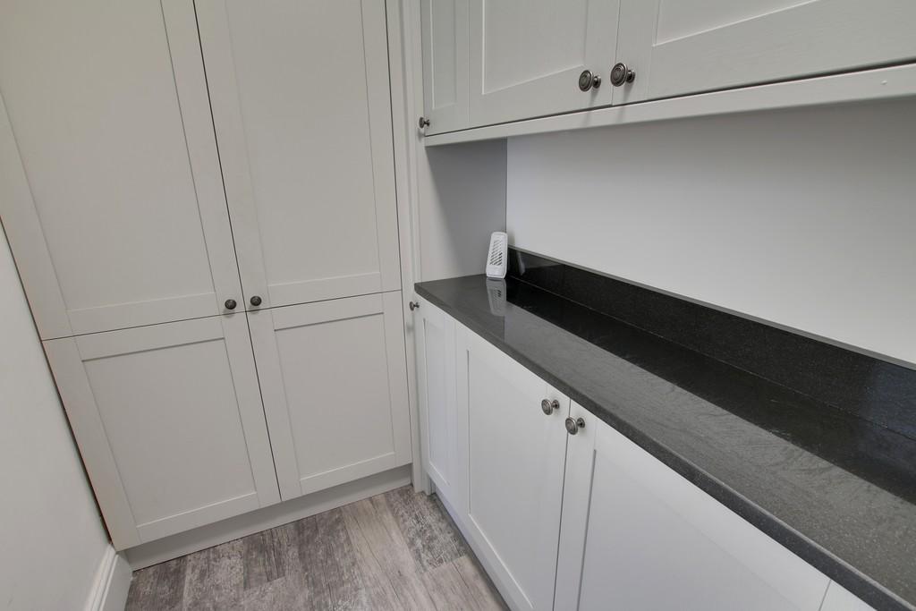 Fitted with wall and base units with granite worktops, pantry cupboard, space for washing machine and fridge/freezer.