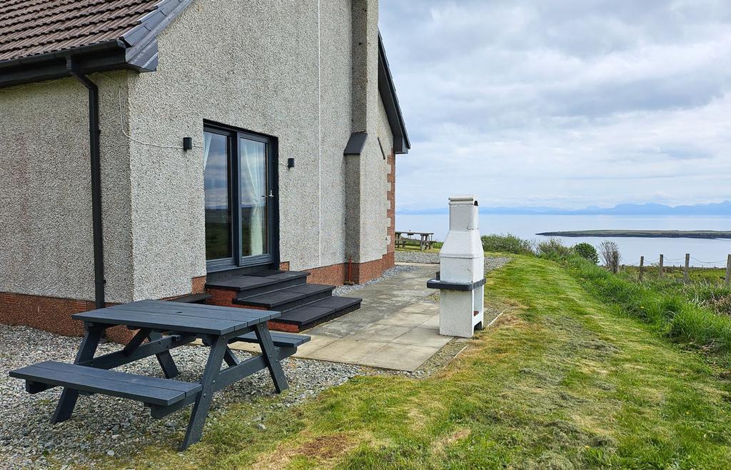 A shared driveway from the township road leads to gated access to the property and chipped parking, the garden grounds are laid mostly to grass with some planted beds and offer spectacular views to across the sea to Gairloch Head to the front and the Quiraing to the rear, a flagged patio to the side elevation with BBQ offers the perfect place to relax and enjoy the views.
