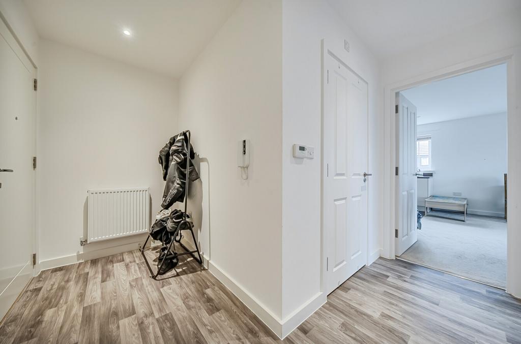 A generously-proportioned flat on the first floor of this modern building. The property has a twenty-three-foot reception room with a south-west-facing Juliette balcony plus a pair of south-east-facing windows. The spacious, open-plan kitchen area features sleek, cream-coloured units and most of the appliances are either partially or fully integrated. There is a good-sized bedroom, an attractive bathroom and a built-in storage/utility cupboard has been provided in the entrance hallway. Well insulated walls, high performance glazing and gas central heating make for a very good energy-efficiency rating. The flat comes with use of a parking space and the nearby A120 connects to the M11 as well as to some of the regions other major roads. Alternatively, Bishop's Stortford town centre/railway station can be easily reached via bike or local bus.