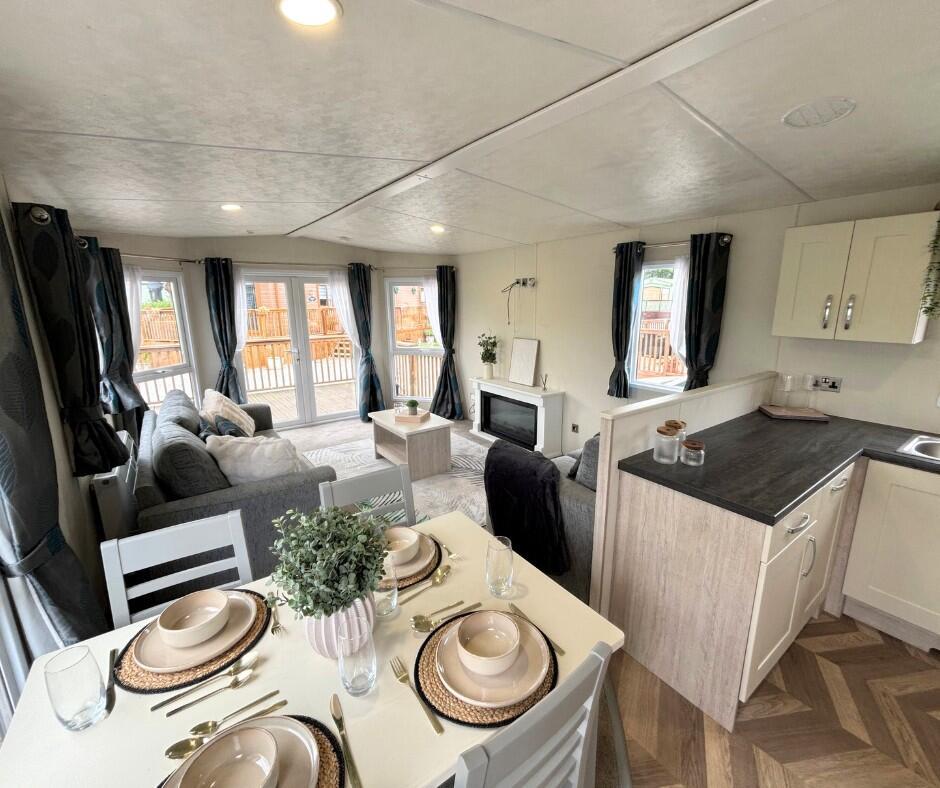 Step inside the Delta Danbury and you’ll find a welcoming, open-plan living area designed with comfort and practicality in mind. The lounge features large windows and those all-important front-opening doors, flooding the space with natural light and creating a seamless flow onto your private decking. Whether you’re entertaining friends, enjoying a quiet evening, or simply soaking up the views, it’s a space that feels effortlessly inviting. The well-equipped kitchen and dining area are ideal for everything from quick snacks to family dinners, with plenty of storage and counter space to make life easy. With two bedrooms—a spacious master and a cosy twin—the Delta Danbury provides comfort for couples, families, or visiting guests. A modern bathroom completes the layout, offering everything you need for both short getaways and longer countryside escapes.