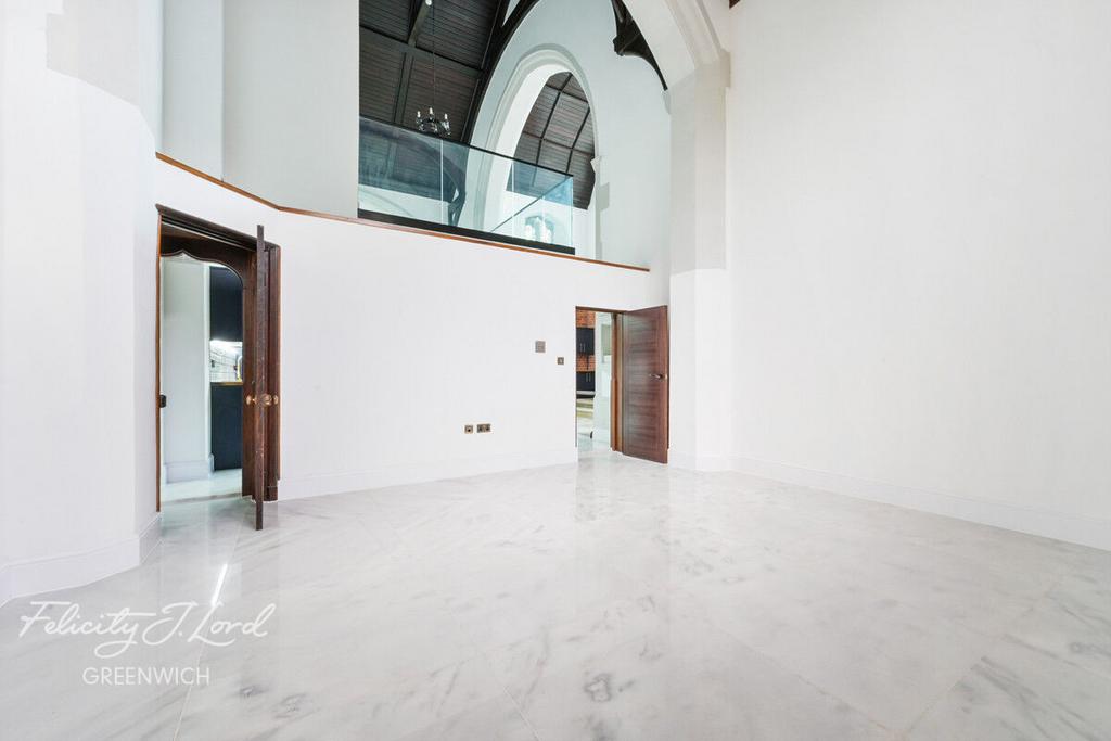 The space flows effortlessly into a bespoke, high-specification kitchen, equipped with {mention specific features, e.g., integrated appliances, a central island and countertops}. Thoughtful design has incorporated the church's features, such as decorative archways, to frame distinct zones within the vast space.