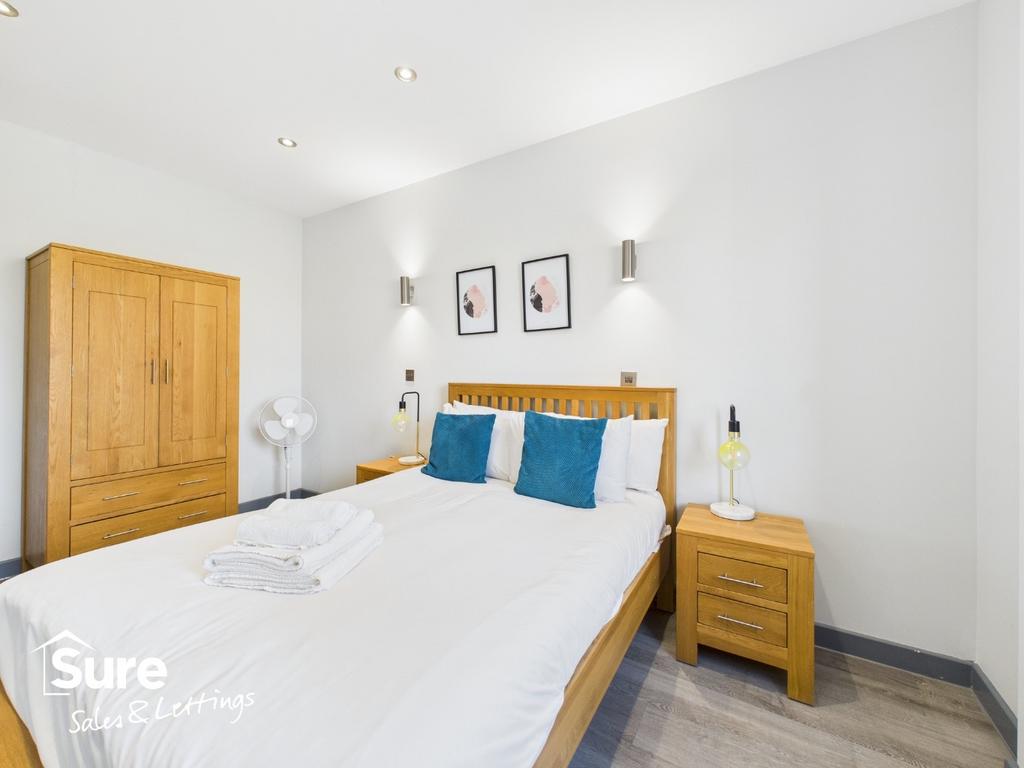 The apartment features a generously sized double bedroom, offering a peaceful sanctuary for rest and rejuvenation. Thoughtfully furnished, it provides a comfortable and private retreat. Adjacent to the bedroom is a sleek, modern bathroom, complete with contemporary fixtures and fittings, ensuring a refreshing start or end to your day.