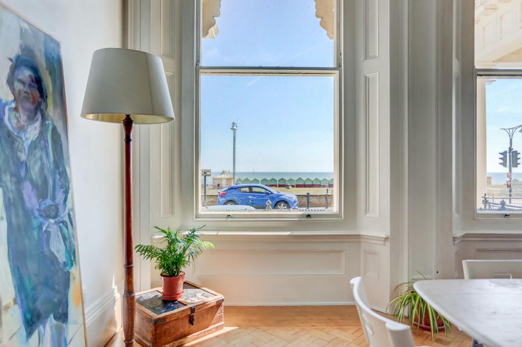 Set inside the grandeur of a Grade II* listed building, Adelaide Mansions dates back to 1873 and was designed by Decimus Burton as part of the Wick Estate. This expansive apartment measures 1,906 sqft/177.1 m2 and boasts a host of stunning features. The lounge has beautiful high ceilings making it feel airy and spacious, there is a modern separate kitchen with enough space for dining and three double bedrooms. There is a utility room which was previously used as a fourth bedroom. The apartment is brimming with period charm, decorative cornicing and complete with wood floors and the most tremendous views overlooking Hove lawns and the sea.