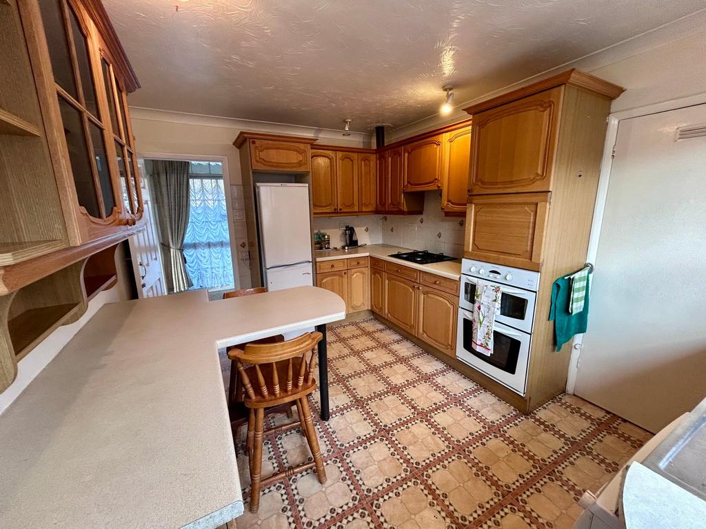 4.11m x 3.03m (13' 6" x 9' 11") Double glazed window and door to rear, Stainless steel sink with drainer, Range of eye level units. and base units with cupboards and drawers. Laminate work surface with breakfast bar. Plumbing for washing machine, space for Fridge/Freezer, Gas hob with extractor hood above, Built double oven. wall mounted Gas boiler. Door to walk in pantry.