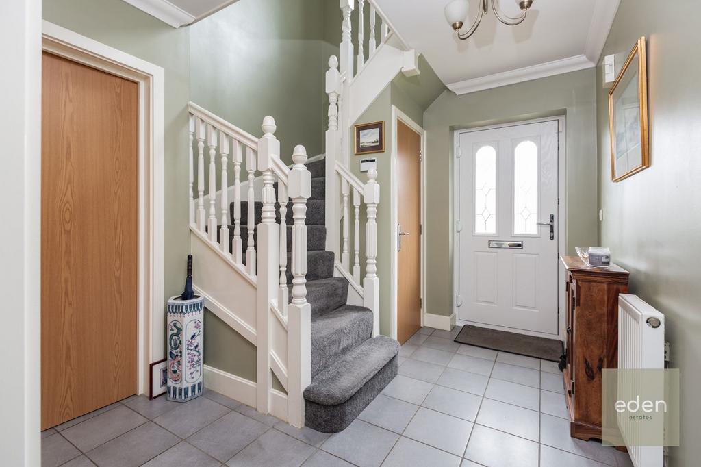 GUIDE £650,000 to £700,000. Stunning five-bedroom semi-detached house offering an abundance of space, style, and character throughout. Perfectly situated on Clearheart Lane, this well-presented home boasts three generous reception rooms, each flooded with natural light and featuring cosy fireplaces, plush carpeting, and modern lighting. The heart of the home is a vibrant open plan kitchen and dining area, equipped with a sleek island, integrated appliances, and seamless French doors that open onto a beautifully maintained garden with a versatile patio - ideal for alfresco dining and entertaining. The property includes five bright and airy bedrooms, many with built-in wardrobes and decorative chandeliers, providing relaxing retreats. Two contemporary bathrooms each feature walk-in showers, stylish vanity units, and ample storage. Additional highlights include a dedicated utility room with washer/dryer and storage, a welcoming hallway with elegant staircase, and dual access to both front and rear gardens. The classic brick exterior, well-kept lawns, and paved pathways add to the kerb appeal, while side gate access and a garden shed deliver practical touches. This is a truly charming family home combining comfort, function, and impressive entertaining spaces indoors and out.