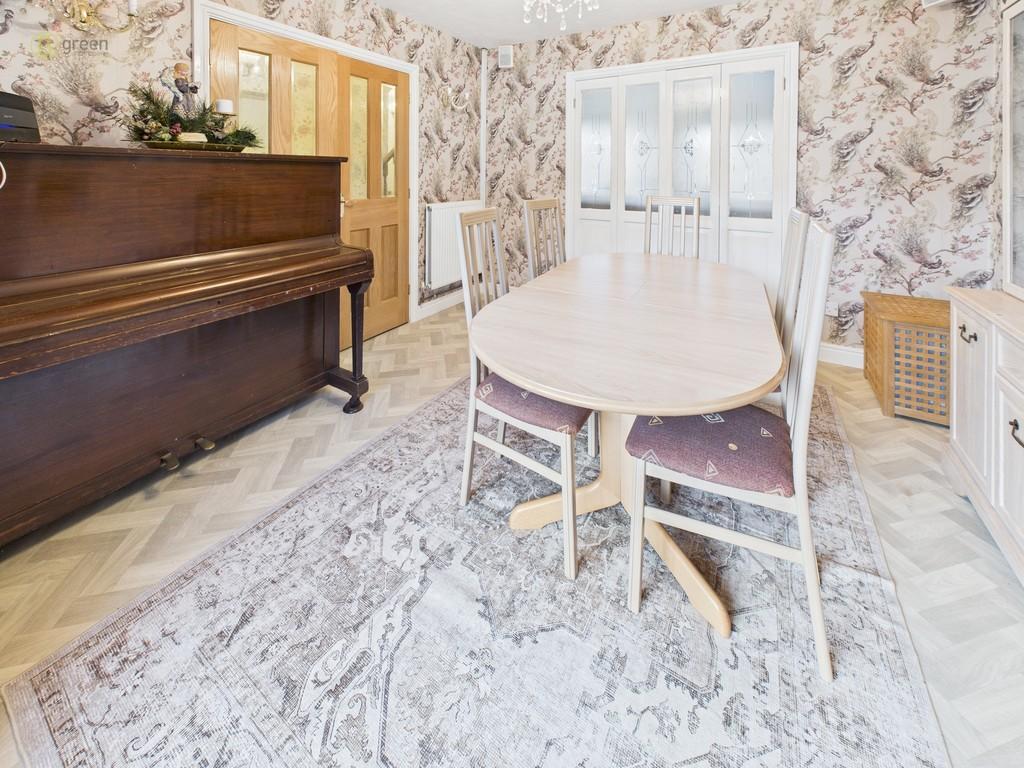 DINING ROOM 11' 5" x 13' 8" (3.48m x 4.17m) With a box bay window to front, herringbone effect flooring, radiator, speakers for surround sound system, wall and ceiling lights. The dining room provides access to the lounge via frosted bi-folding doors.