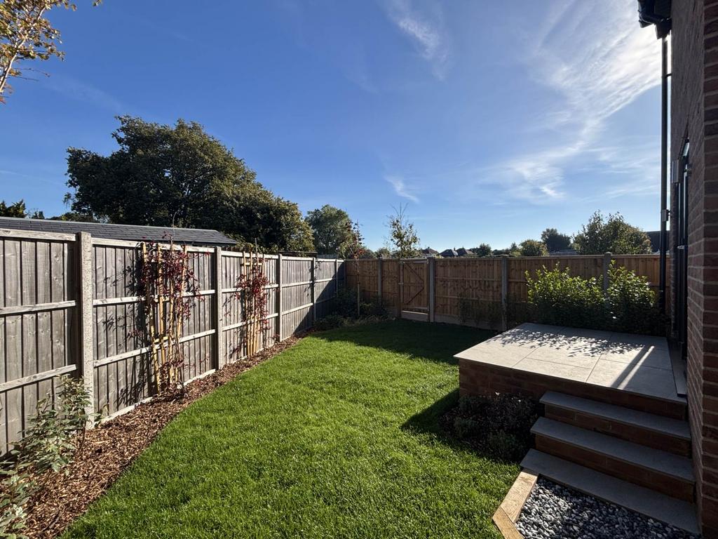 The landscaped gardens are laid to lawn with various tree and shrub borders and enclosed on 3 sides by newly installed panelled fencing.