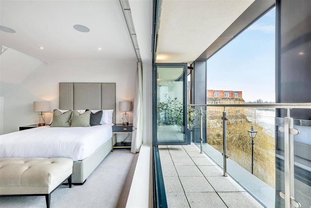 This is a unique interior designed newly built three bedroom, four bathroom townhouse located within a privately gated, riverside development with a private car parking space. The townhouse is arranged over four floors boasting three fabulous balconies at three different levels each one overlooking the River Thames. The ground floor has a large eat-in kitchen / breakfast room with river views, utility area and cloakroom. There is a dual aspect reception area which is divided into dining room and lounge area with direct access to one of the terraces via the bi-folding doors on the first floor. The staircase extends up to the bedrooms with two being on the second floor and one with its own en suite, as well as a family bathroom. The master bedroom suite is located on the entire top floor. The townhouse also benefits from a bespoke, high gloss ‘Macassar’ kitchen with fully integrated Miele appliances including wine cooler and a Crestron Home Automation System that controls the lighting, heating / air conditioning and TVs throughout the property. With its riverside location, Palace Wharf is also conveniently close to several transport links including Hammersmith, Barons Court, Putney Bridge and Fulham Broadway Underground Stations, along with several regular and varied bus services which further improve accessibility. EPC rating B. Council Tax Band H.