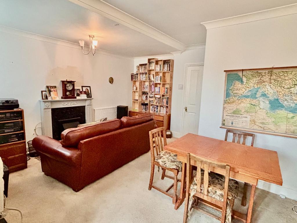 The garden faces south, with a patio, neatly kept lawn and shed. There is side access to the front garden and a driveway for off-street parking.