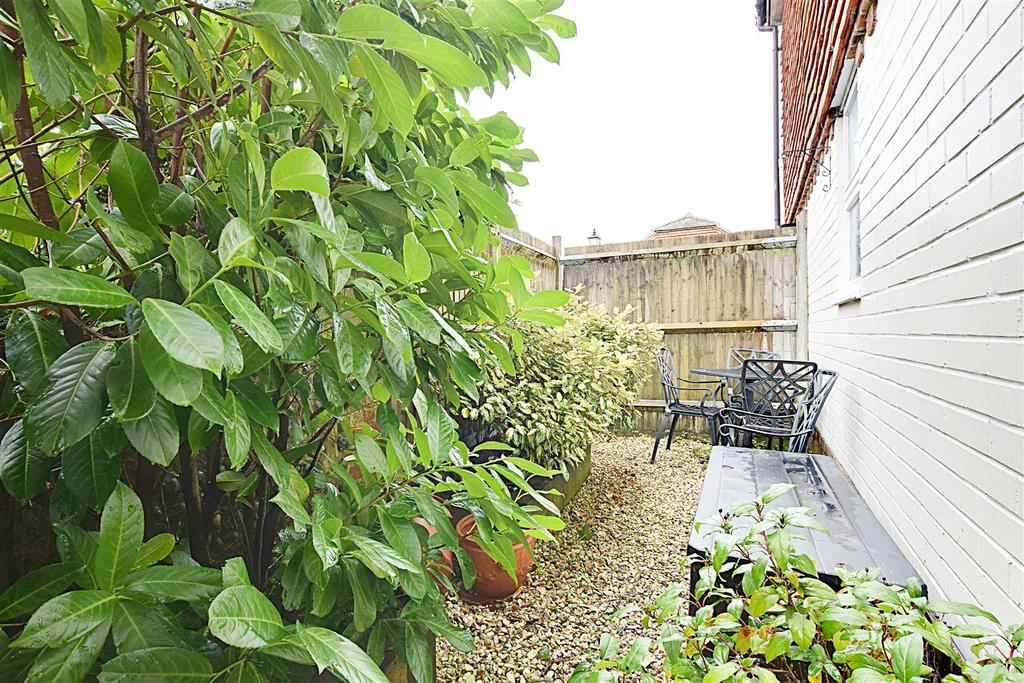 Private Garden - Enclosed with fencing and part stone wall to all sides, chip stone and raised shrub beds with Laurel hedging.