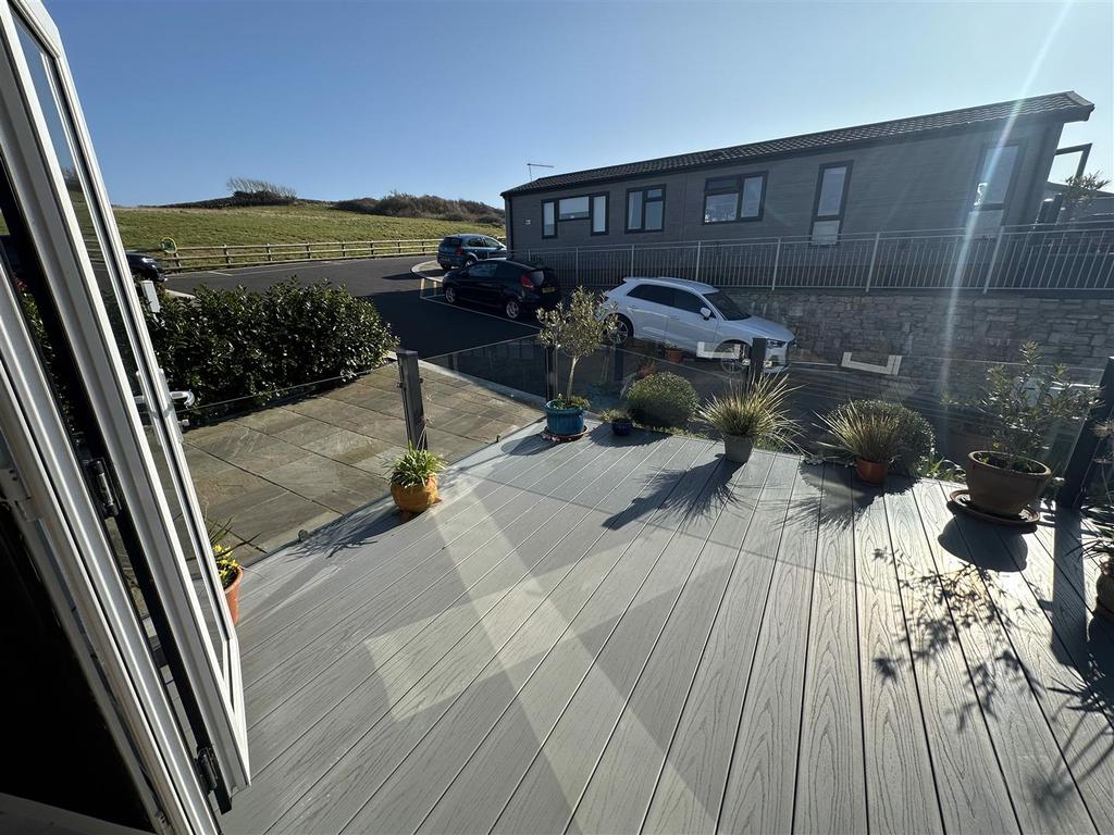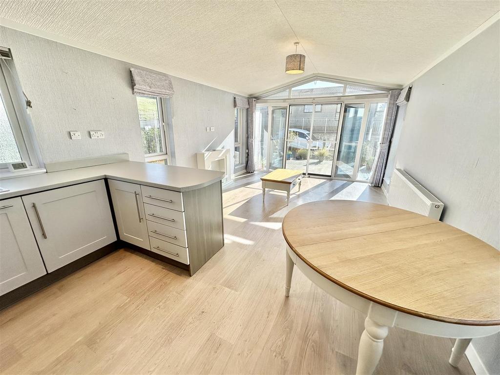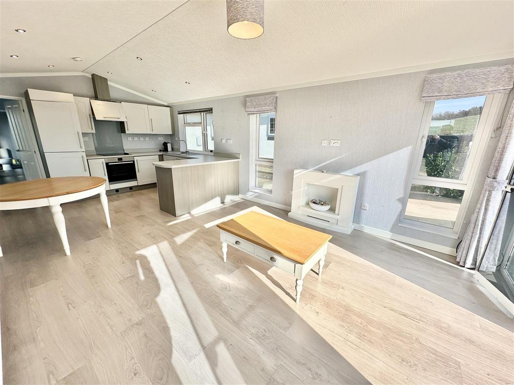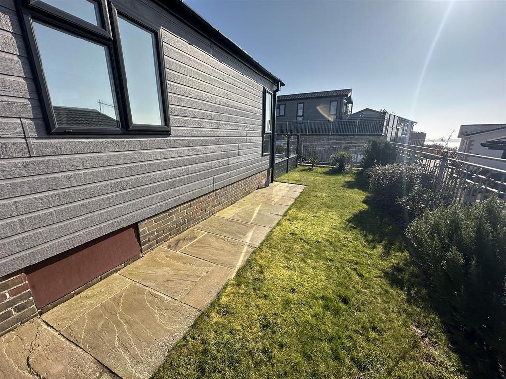 Externally, the park home enjoys wrap around gardens, with a lawned area to one side and a large paved area to the other.