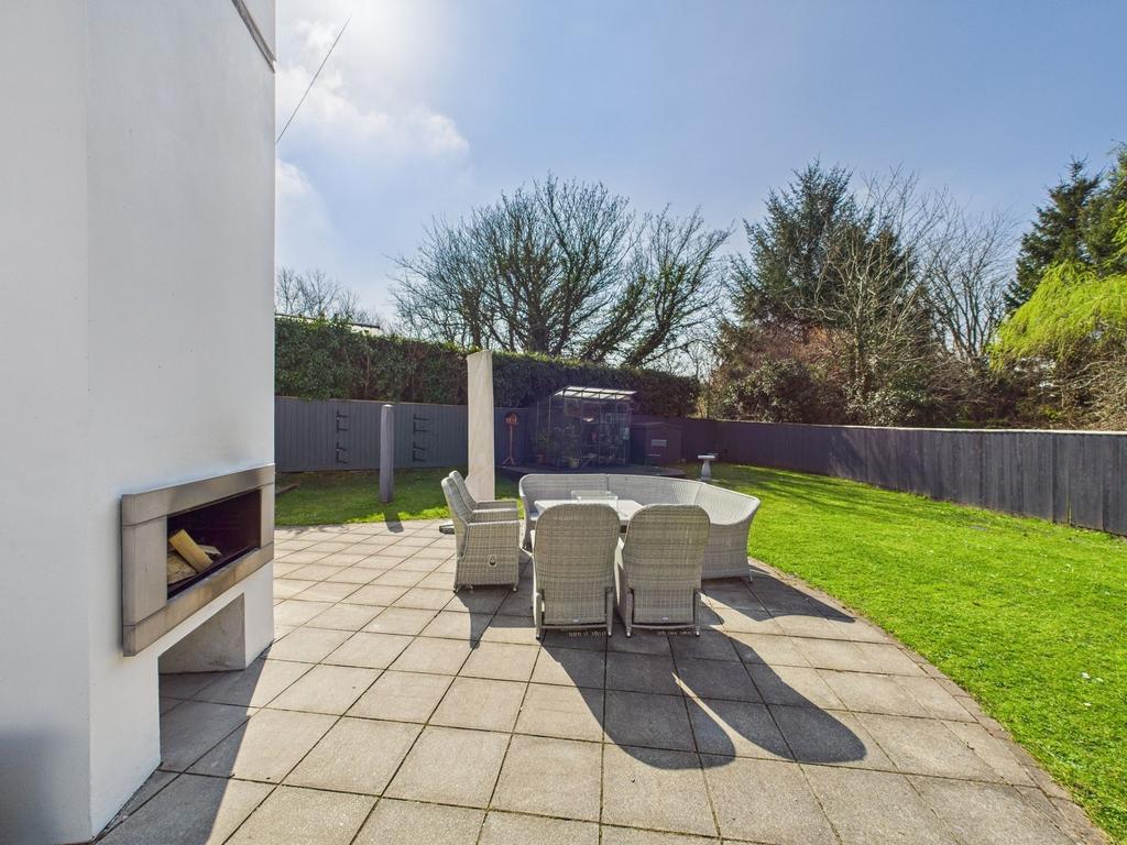 Tides End enters to the light & airy hallway which really sets the tone for the rest of the accommodation with its impressive finish including glass balustrade oak stair case, gloss tiled flooring and warm feeling upon arrival. A door to the left of the hallway leads to a reception room which could be used as a ground floor bedroom if required. Adjoining the reception room, to the rear there is a ground floor shower room. Proceeding along the hallway to your right you enter into the main lounge space. This room not only provides seamless access to the garden through the bi-fold doors but is also accompanied by the kitchen with an open plan design. The lounge and kitchen can not only host a modern lifestyle but with the benefit of a log burner you are also reminded of the home’s countryside location. The bottom floor of the property also includes a convenient utility room and a versatile area which is currently being utilised as a home gym. The split landing connects the first floor of this immaculately designed and maintained property together. To the left is the master bedroom with en-suite and balcony/veranda and to the right a further four substantial double bedrooms and family bathroom with walk-in shower and bath.