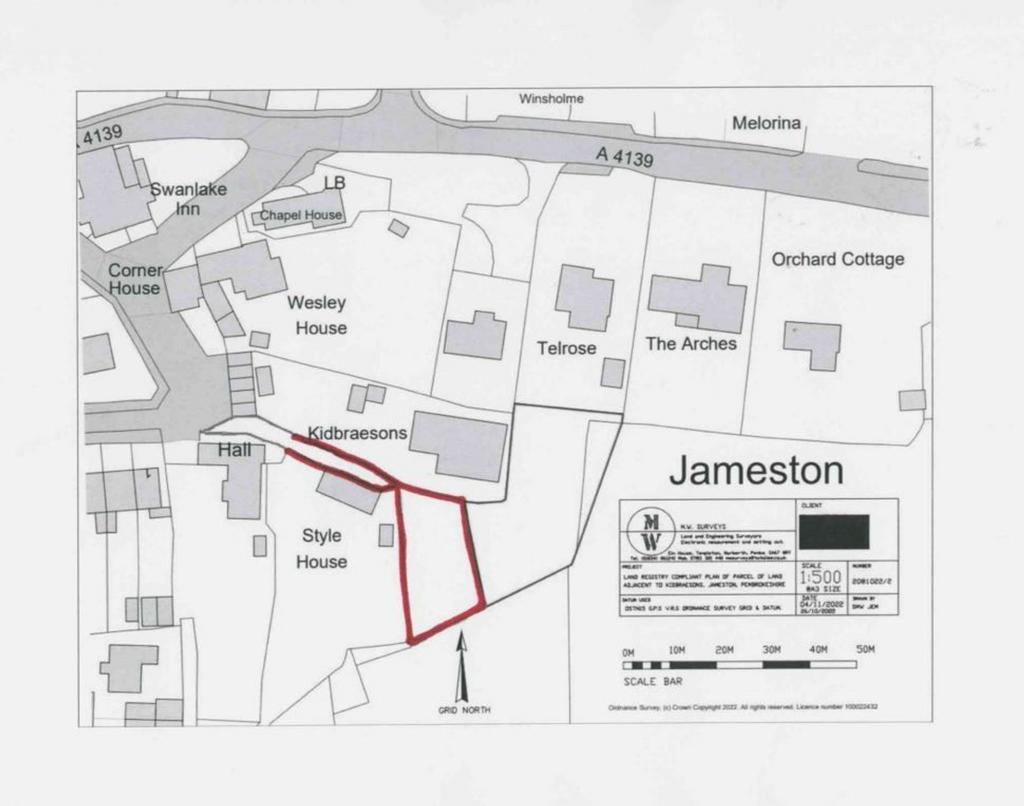 A rare opportunity to purchase a sizable building plot (approx 33m x 19m) with Preliminary Planning Permission in place for the construction of 2 storey 3 bedroom detached dwelling on a vacant plot in the popular semi rural village of Jameston. The plot is situated adjacent to Style House and the Village Hall and includes its own private access via a lane. The plot offers fabulous views over the rolling countryside, and is only a short distance from the popular resorts of Tenby, Saundersfoot, and Manorbier Village, with amenities such as pubs, restaurants and schools at all levels, with excellent public transport links. The beaches at Swan Lake Bay and Manorbier are within walking distance.