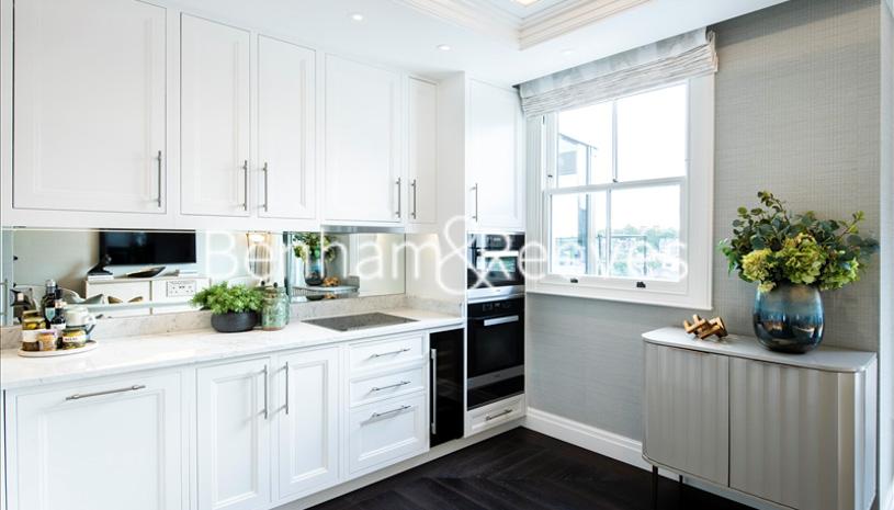 Relish the modern comforts and breathtaking views offered by this luxurious apartment with two bedrooms and three bathrooms. The open-plan kitchen seamlessly integrates into a spacious, stylish reception and dining area. Bi-fold doors lead to a private South-facing terrace, offering stunning views of Kensington. Both bedrooms feature en-suite bathrooms, complemented by a guest powder room.