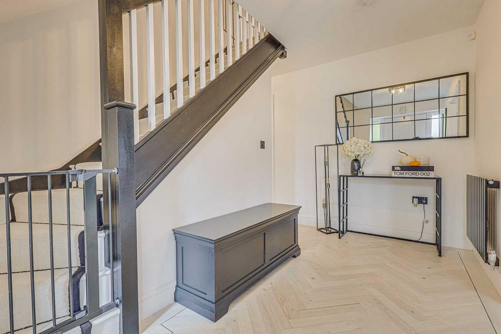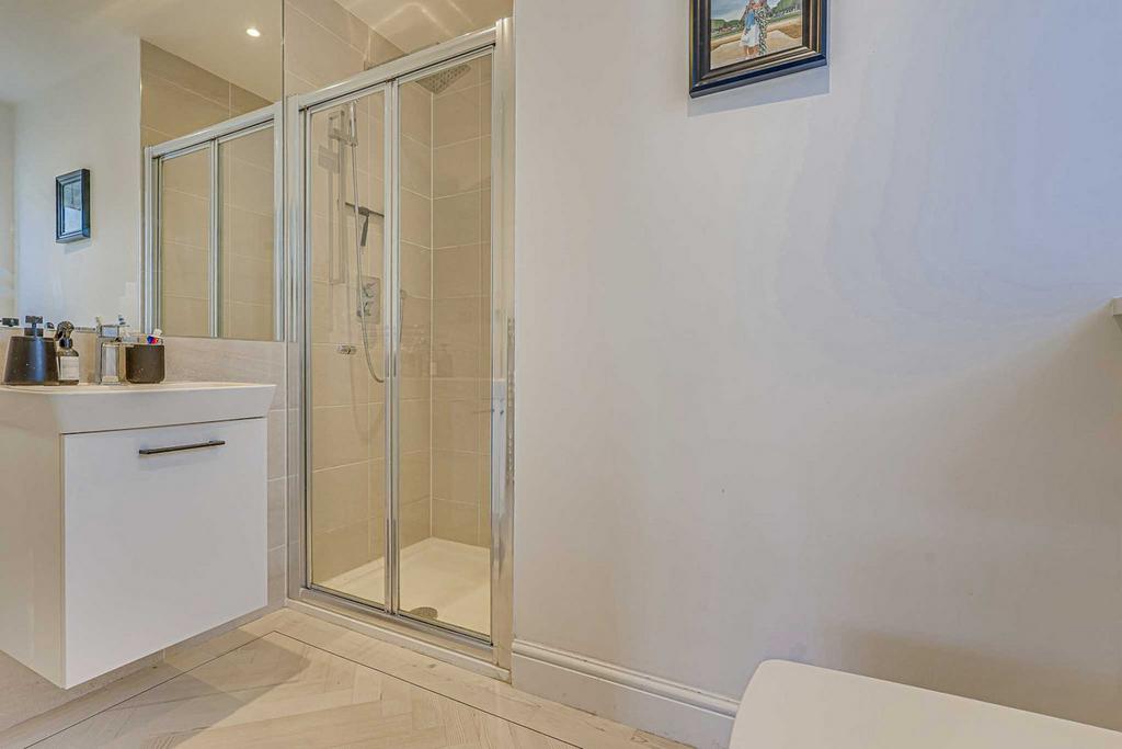 The first floor offers four generously proportioned bedrooms, two of which enjoy elegant en suite shower rooms. The remaining bedrooms are served by a contemporary family bathroom finished to a high specification, with one currently styled as a luxurious walk-in wardrobe. The layout provides superb versatility, perfectly suited to growing families or those seeking flexible guest accommodation. A bright and spacious landing continues the home’s airy, open atmosphere throughout this level.