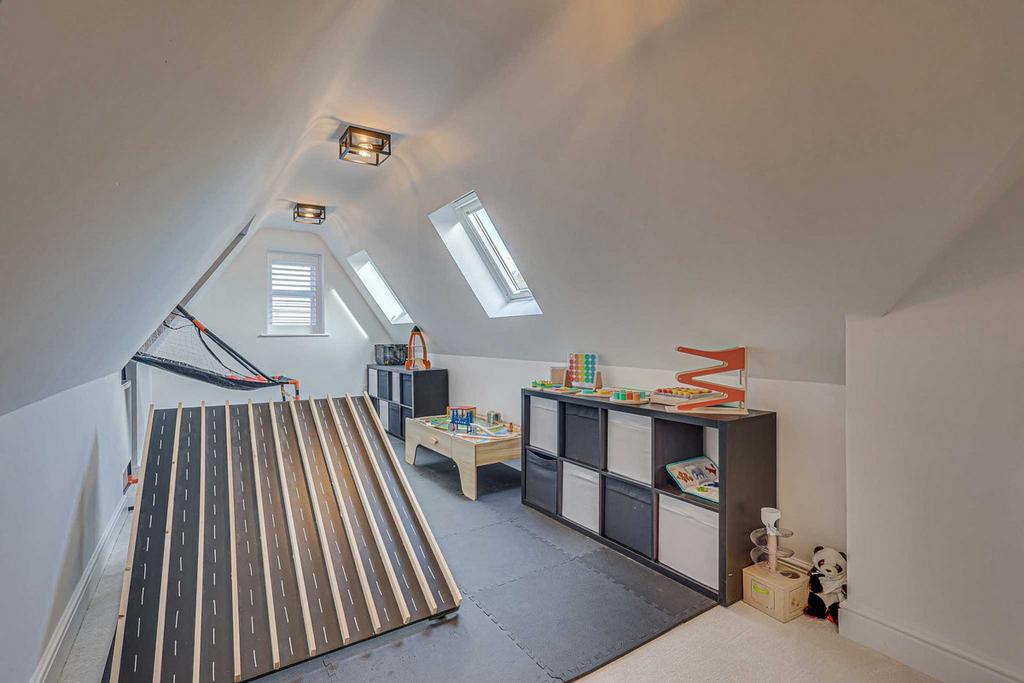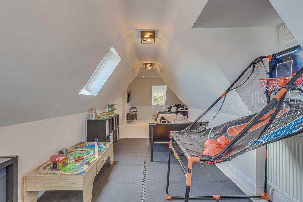 The top floor is a true highlight, featuring a spacious and versatile den or playroom, ideal for use as a games room, cinema room or secondary lounge. This level also includes the fifth bedroom, a generous double with its own en suite, along with additional storage. Offering superb flexibility, this floor is perfect for teenagers, guests or anyone seeking a private retreat within the home.