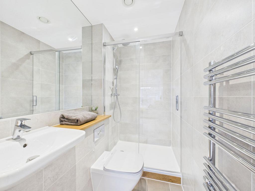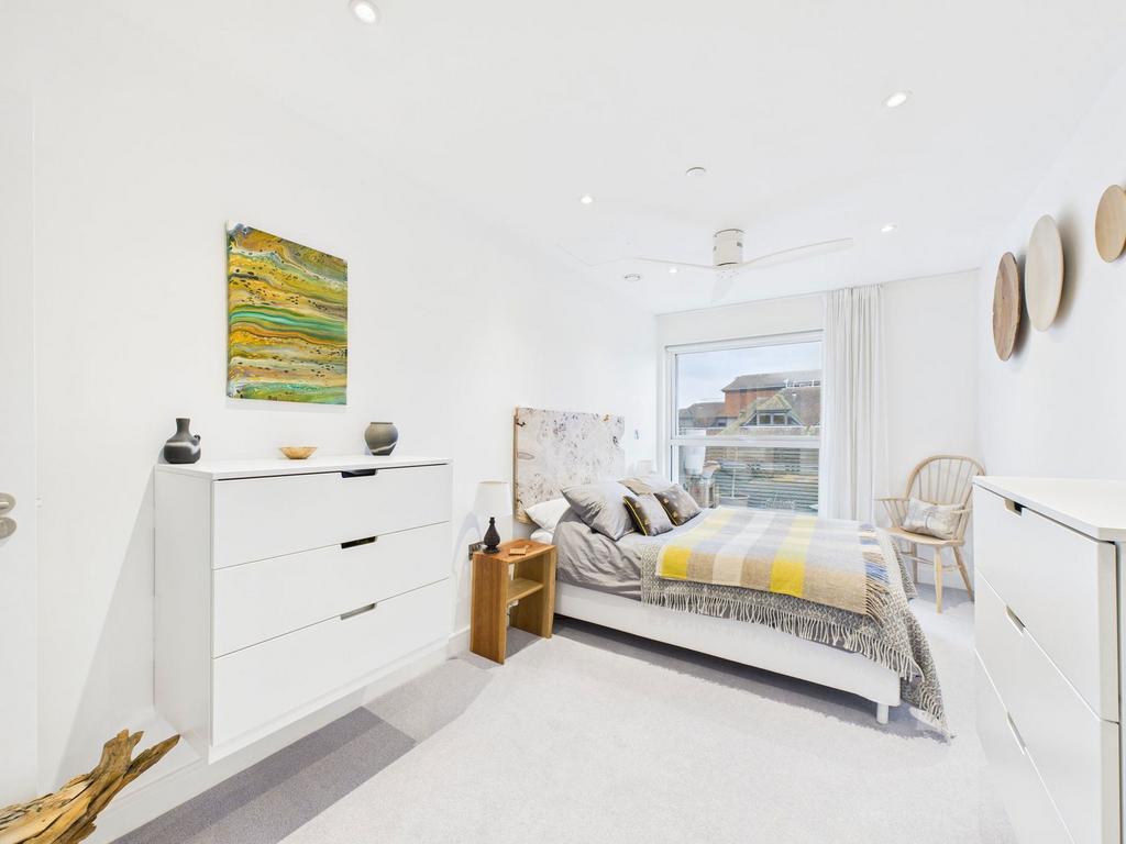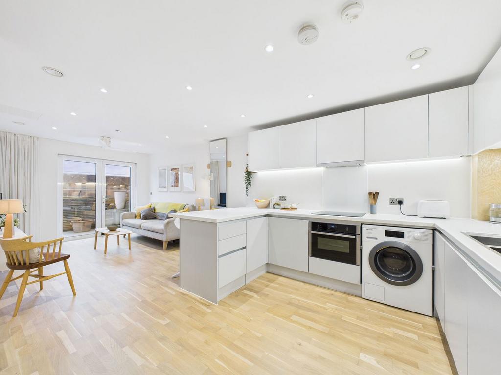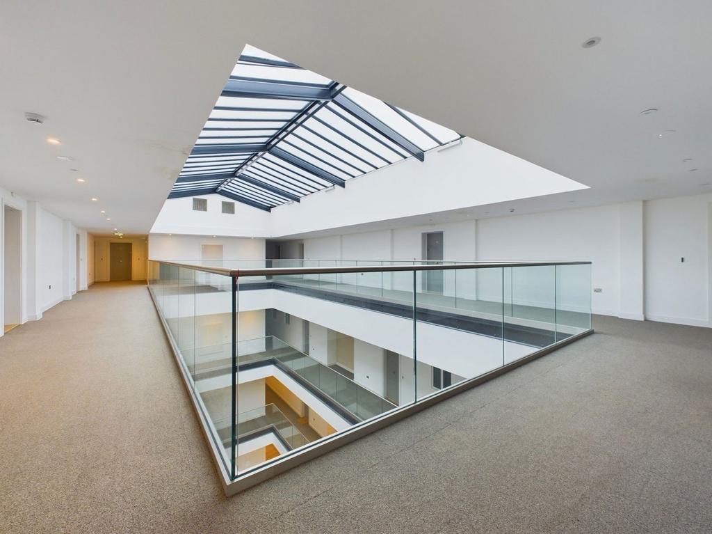 From the Communal Hall, which has a video entry system, stairs and lifts take you up to the Top Floor, where you will find this impressive Apartment, which is accessed via a glazed atrium. A particular feature of this executive home is the 24ft open plan Kitchen Living Area, which along with the rest of the property benefits from under floor heating. The stunning Kitchen is fitted with a stylish range of floor and wall mounted units which has a host of integrated appliances, under unit lighting and a breakfast bar. The Living Area offers plenty of space for sofas, which makes it ideal for entertaining with double doors spilling out to the private 29ft Terrace, which has wonderful, far reaching views. Completing the accommodation is the two generous Double Bedrooms, which includes a 16ft Principal Suite, with a contemporary En Suite Shower Room and a luxurious Family Bathroom with a bath and shower above.